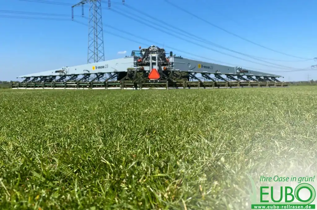 Wir bauen unseren Rollrasen komplett selbst an – auf unseren Feldern und streng nach deutschen Qualitätsstandards.
