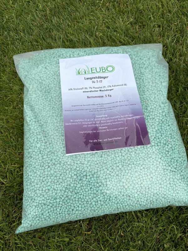 Der EuBo Langzeitrasendünger sorgt für eine zuverlässige und gleichmäßige Nährstoffversorgung deiner Rasenfläche. 3x pro Saison ausbringen, alle 6–8 Wochen, und dein Rasen wird kontinuierlich mit Stickstoff versorgt – für sattes, gleichmäßiges Wachstum und eine dichte, strapazierfähige Grasnarbe.