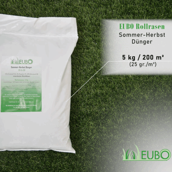 Unser Sommer-Herbst Rasendünger von EUBO sorgt für eine rundum gesunde und kräftige Rasenfläche vom Frühjahr bis in den Winter. Die ausgewogene Nährstoffkombination unterstützt das Wachstum im Frühjahr, stärkt die Widerstandskraft in heißen Sommermonaten und bereitet den Rasen optimal auf die kalte Jahreszeit vor. Gleichzeitig verbessert der Dünger die Regenerationsfähigkeit und fördert eine dichte, sattgrüne Grasnarbe. Durch die langfristige Wirkung werden Nährstoffe gleichmäßig und bedarfsgerecht freigesetzt – für einen widerstandsfähigen, gesunden und gepflegten Rasen zu jeder Jahreszeit.